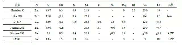 燃氣輪機用高溫合金的成分。